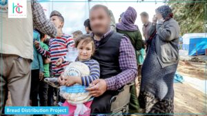 Distribution of bread to needy families in northern Syria To support the nutritional needs of these households, And to alleviate her suffering In securing one of the most important materials necessary for her daily strength